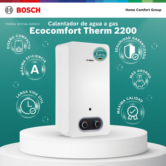 CALENTADOR DE PASO A GAS BOSCH 10 LITROS TIRO NATURAL THERM 2200